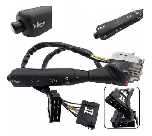 - Chave de Seta com Retorno Automático, Buzina, Pisca Alerta, Lanterna, Farol Baixo, Farol Alto, Toque de Farol, Lavador Dianteiro, Lavador Traseiro, Limpador Dianteira, Limpador Traseiro, Luz de Neblina Dianteira, Sentido e Seta